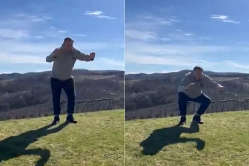 Na snimku koji je objavio vidi se kako u opuštenom ambijentu radi čučnjeve, demonstrirajući fizičku spremnost.