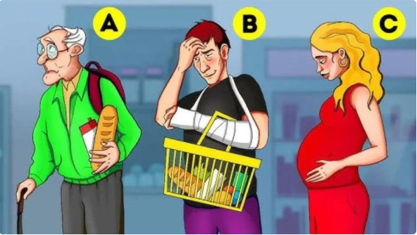 U ovom zadatku, u jednoj prodavnici nalaze se tri osobe pod sumnjom – stariji čovek, muškarac sa povređenom rukom i trudnica. Međutim, samo jedna od njih je lopov.