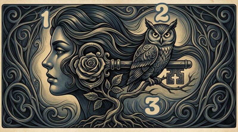 Pred vama je slika koja sadrži tri simbola: profil žene, sovu i ključ. Svaki od njih nosi posebno značenje i povezan je s određenim obrascima razmišljanja i ponašanja.